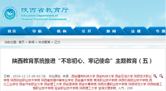 陕西省教育厅:陕西教育系统推进“不忘初心、牢记使命”主题教育(五)