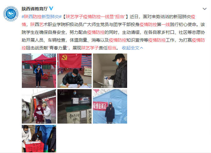 上一条:西部网《陕西艺术职业学院“文艺力量”助力打赢疫情防控阻击战》