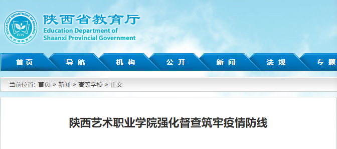 为防止新冠肺炎疫情向校园扩散,守护师生健康安全,陕西艺术职业学院将疫情防控作为当前重大政治任务落实落细,按照该院党委统一部署,加大监督检查力度,确保各项防控措施落实到位,筑牢疫情防线。
