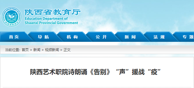 上一条:陕西省教育厅《陕西艺术职院原创MV<致敬·问好>战“疫”英雄》