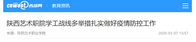 ——强化宣传,凝聚抗疫“正能量”。疫情暴发之初,该院学工部在《致陕西艺术职业学院全体学生的一封信》中及时引导学工战线全体人员充分认识疫情防控工作的重要性、紧迫性、艰巨性,逐项落实疫情防控工作任务,并通过微信公众号、辅导员工作群等多渠道推送防疫知识,发布学院防疫安排;各系通过系部公众号、班级微信群、在线班会等宣传学院疫情防控措施普及疫情防控知识,要求学生着眼疫情防控大局,主动配合现居住地做好防控,关注疫情权威信息,主动宣传国家疫情防控政策和疫情防控知识,不造谣、不信谣、不传谣,凝聚抗疫“正能量”。