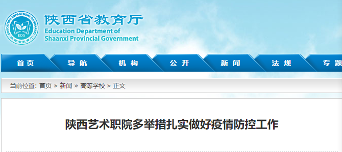 自新冠肺炎疫情暴发以来,陕西艺术职业学院凝心聚力、多措并举,扎实做好疫情防控工作,守护学生生命健康安全。