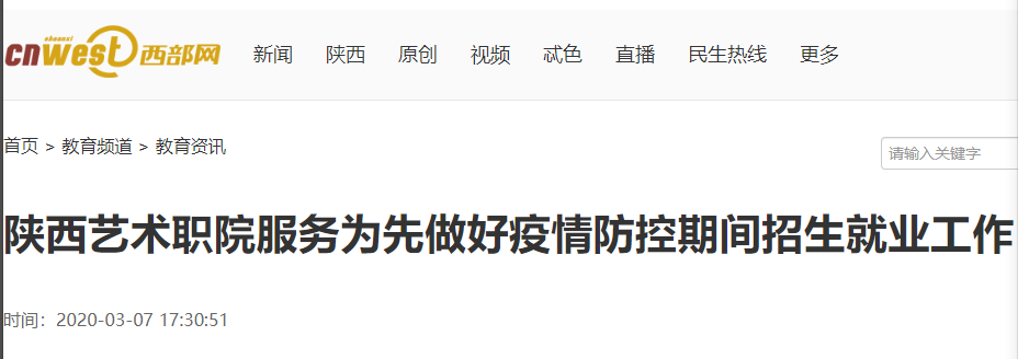自新冠肺炎疫情防控阻击战打响以来,陕西艺术职业学院根据院党委安排部署,疫情防控不松懈,招生就业服务不断线,服务为先,切实做好疫情防控期间的招生就业工作。