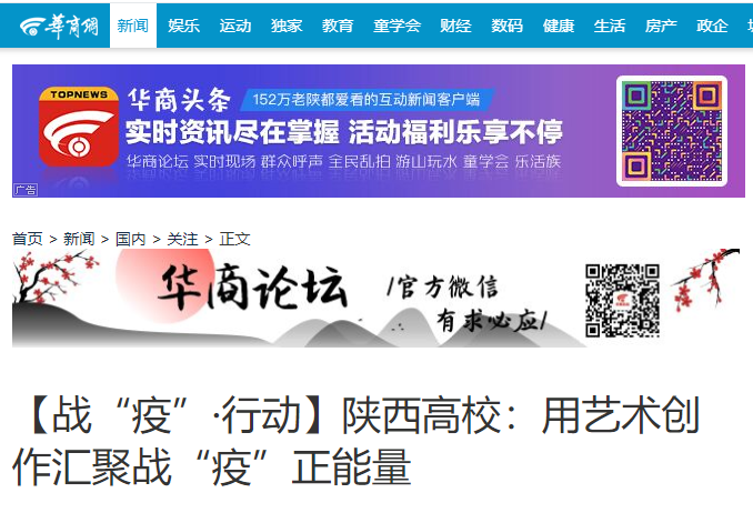 国际在线陕西消息:在新冠肺炎疫情防控阻击战中,陕西高校师生拿起手中的笔,写词作曲、绘图编舞,用一件件艺术作品传递真爱,为“逆行者”助威,为同胞们加油鼓劲。