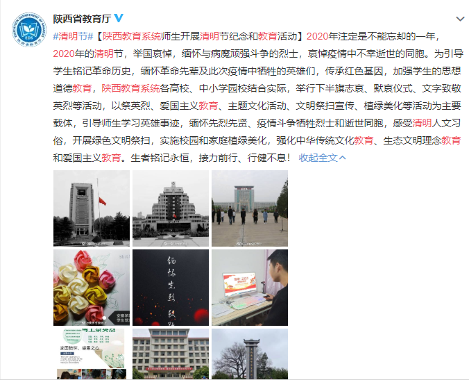 转载链接:https://s.weibo.com/weibo?q=%E9%99%95%E8%A5%BF%E6%95%99%E8%82%B2%E7%B3%BB%E7%BB%9F%202020%E6%B8%85%E6%98%8E&wvr=6&topsug=1&Refer=SWeibo_box
