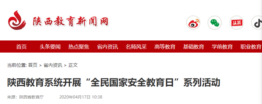 下一条:陕西省教育厅官博《陕西教育系统积极开展线上#全民国家安全教育日#宣传活动》