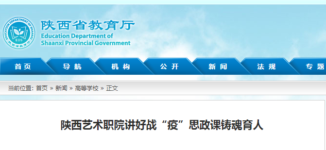在新冠肺炎疫情防控常态化下,陕西艺术职业学院深挖战“疫”育人元素,讲好战“疫”思政课,让教师在战“疫”中铸魂育人,学生在战“疫”中涵养家国情怀与使命担当。