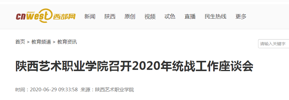 6月24日,陕西艺术职业学院在文艺南路校区五楼会议室召开2020年统战工作座谈会,深入学习贯彻习近平新时代中国特色社会主义思想,分析研判新时代统一战线工作新形势,明确下阶段统战工作目标,为学院发展建言献策,凝聚人心、集聚力量。