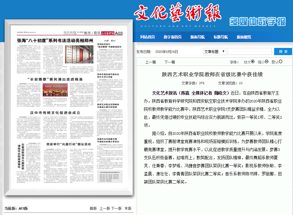 上一条:西部网《陕西艺术职业学院开展2020年秋季学期开学疫情防控演练》