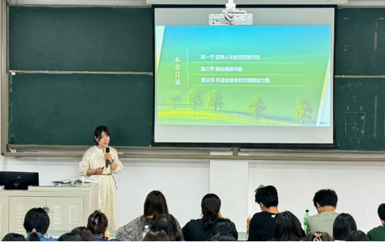 刘正利一行还旁听了马克思主义学院教师范甜甜讲授的《习近平新时代中国特色社会主义思想概论》——“习近平生态文明思想专题”一课。