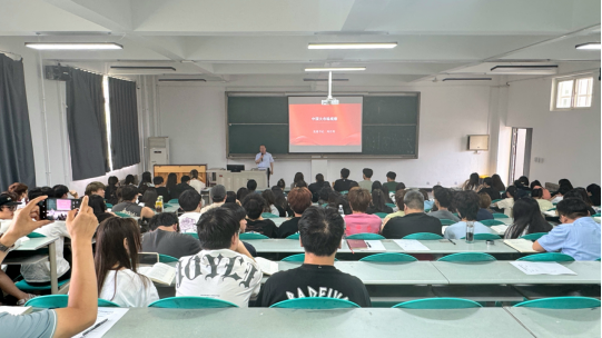 在课堂上,刘正利围绕主题,从“先有安全和发展才有绿水青山”讲起,细数新中国的奋斗历程,进入新时代,习近平总书记提出“建设美丽中国”、“绿水青山就是金山银山”,这是在安全和发展的基础上提出的更高目标和追求,是实现中华民族伟大复兴强国之路的应有之义。随后强调“把握好中国大市场这一突出优势”,以“一颗小荔枝,可以当日‘鲜’达”为例,从现代物流业的迅猛发展折射出中国超大规模的市场优势,历经75年的砥砺奋进,依托大市场,我国不仅创造了经济快速发展奇迹,也造就了强大国际竞争力。最后落题“中国大市场,你们大作为”,鼓励广大青年学生“广阔天地、大有可为”,中国梦是我们的,更是你们的,要强健体魄、珍惜韶华、发奋学习,在科技创新、乡村振兴、绿色发展、社会服务、卫国戍边等各领域各方面勇当排头兵和生力军,争做有理想、敢担当、能吃苦、肯奋斗的新时代好青年,在推进强国建设、民族复兴伟业中展现青春作为、彰显青春风采、贡献青春力量。