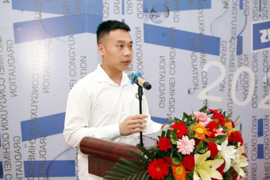 陕西风华文化发展有限公司董事长孙英、美术与设计学院2025届毕业生雷思阳分别作为企业代表和毕业生代表发言。