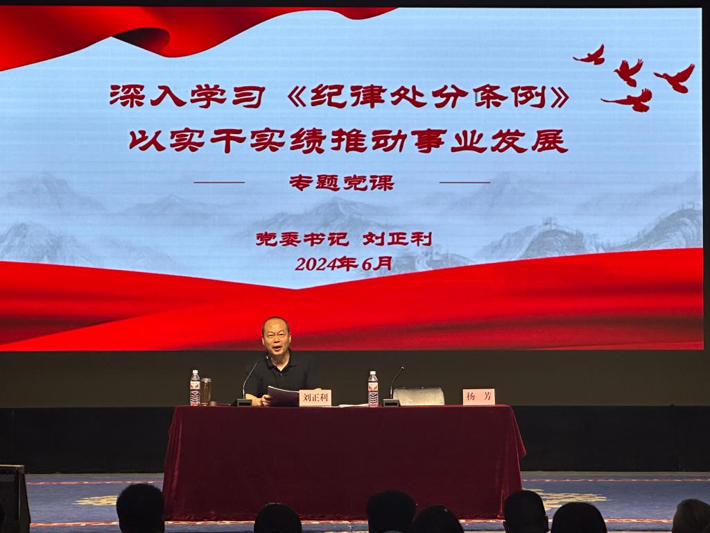 刘正利围绕党纪学习,分别从把握新时代党纪学习教育新特点、原原本本学条例、一心一意涵养生态三个方面,用通俗易懂、深入浅出的语言,生动阐述了新修订的《中国共产党纪律处分条例》。党课内容丰富、涉及面广、针对性强,为党员同志原原本本学、联系实际学、融会贯通学、系统整体学提供了指导。