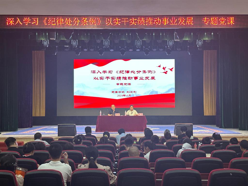 为深入学习贯彻新修订的《中国共产党纪律处分条例》,加强纪律建设,不断推动全面从严治党向纵深发展,6月26日下午,党委书记刘正利在文艺南路校区小剧场为所联系的戏曲学院党总支讲授题为《深入学习〈纪律处分条例〉 以实干实绩推动事业发展》的专题党课。党课由戏曲学院党总支书记杨芳主持,戏曲学院党总支、机关第一党总支及马克思主义学院直属党支部党员师生等参加党课学习。