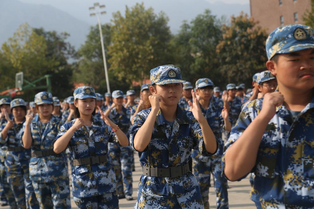 ↑党委副书记、校长杨孝龙宣布军训成果汇报展示开始