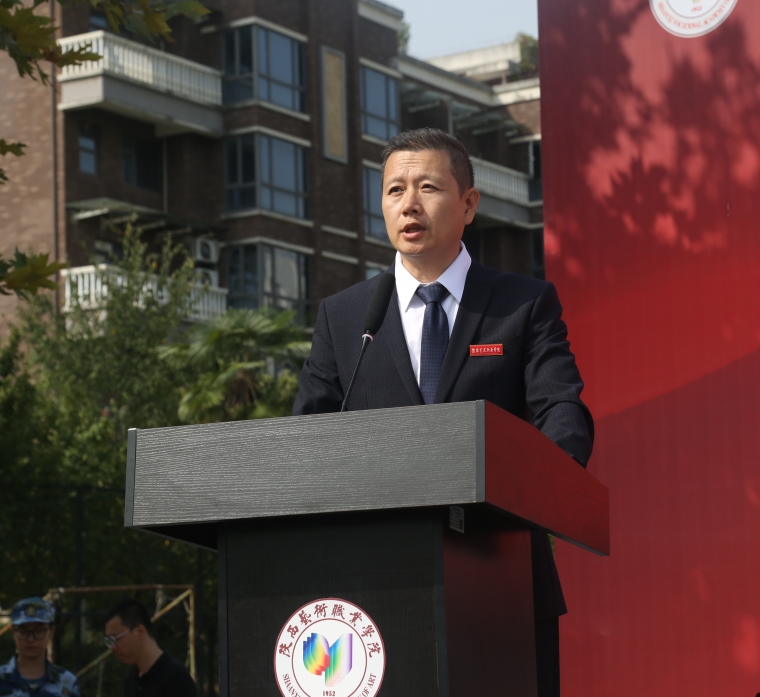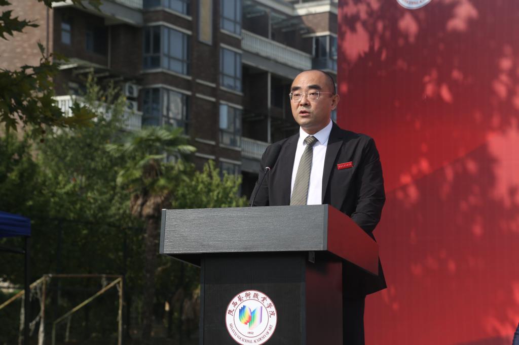 杨孝龙在讲话中对全体2024级学生表示热烈欢迎,对承训部队教官予以诚挚感谢,并在回顾学校72年的办学历程,介绍学校近年来办学显著成绩的基础上,以我校名誉校长、著名京剧表演艺术大师尚长荣先生以及我校秦腔表演艺术家、国家级非物质文化遗产代表性项目代表性传承人马蓝鱼先生等老一辈艺术家为例,激励广大青年学子,以老一辈艺术家为榜样,胸怀家国情怀,坚守艺术理想,追求德艺双馨,做到德技双修,在学校跨越式、高质量发展的新征程上,做未来发展的见证者、参与者和推动者,为同学们上了一堂生动的“开学第一课”。