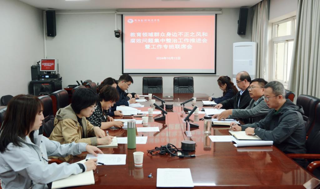 10月12日,我校在文艺南路校区五楼会议室召开教育领域群众身边不正之风和腐败问题集中整治工作推进会。党委副书记、纪委书记郑毅刚,党委委员、党委组织部部长许仲举,党委委员、学工部部长梁晓婷及集中整治工作专班相关部门负责人参加会议。会议由许仲举主持。