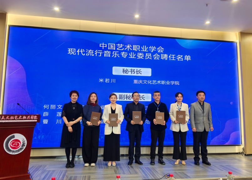 10月18日,中国艺术职业教育学会现代流行音乐专业委员会成立大会暨产教融合专业委员会2024年度工作会议在重庆文化艺术职业学院隆重召开。中国艺术职业教育学会会长王丰,副会长、宁夏艺术职业学院院长张建平,副会长、北京戏曲艺术职业学院党委书记黄珊珊,中国艺术职业教育学会专家委员会主任、中央美术学院教授孙伟等领导出席了会议。我校音乐学院院长薛莲、副院长张婷婷、教学秘书郝艺洁应邀出席,薛莲院长当选为现代流行音乐专业委员会副秘书长。