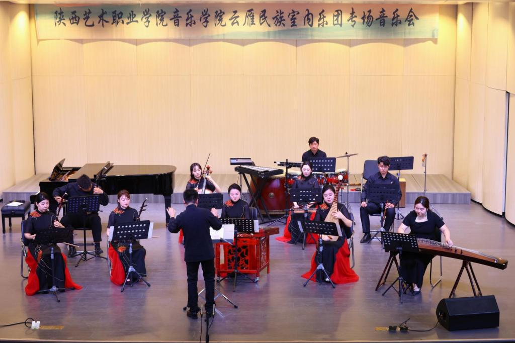 据悉,担任本场音乐会演奏的乐团成员均是音乐学院优秀青年教师和学生,乐团于2019年初由我校音乐学院院长薛莲发起组建,由热爱中国民族器乐教育事业的优秀青年教师组成,是一个年轻而富有活力的团队。乐团以弘扬中国优秀传统文化,传承陕西地方音乐为己任,秉持“传承中积累,发展中创新”,不断探索,努力成为具有时代精神,又极具地方特色的专业艺术团队。室内乐团于2019年参加由中央广播电视总台主办的中国器乐电视大赛入围全国20强;2020年获得陕西省民族器乐大赛优秀组合奖;2021年6月录制文化和旅游部“百年百项”小型作品竹笛与室内乐《飘雪》。2021年10月原创室内乐作品《青衿》获得“敦煌奖”中国室内乐新作品展评优秀奖;2021年11月录制原创室内乐作品《鸿》MV并成功入选文化和旅游部第七届丝绸之路国际艺术节青年艺术家专场“风华长安”民族器乐原创新作品音乐会。乐团成立以来参加多项国家、省市重大演出任务,代表学院参加了赴陕西省委党校、西京医院986医院、苏州工艺美术职业技术学院等多地交流演出活动,2023年参加“兴文化 育新人”舞台艺术展演活动;参加学校与苏州工艺美术职业技术学院党日联谊活动文艺演出;参加学院“双师型”教师教学成果展示活动;参与匈牙利塞格德大学巴托克艺术学院代表团来我校交流访问演出活动;参加西安秦汉新城2024新年音乐会等活动,获得极大好评。