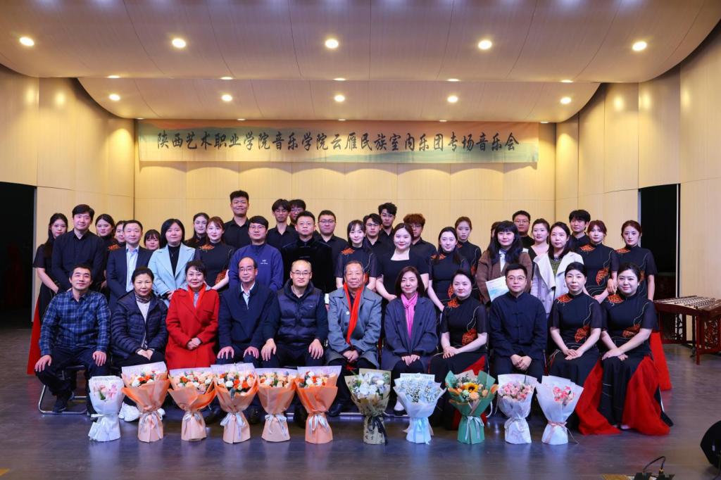 12月5日晚,我校音乐学院云雁民族室内乐团在文艺南路校区举办专场音乐会。校党委副书记佘占宏,党委副书记、纪委书记郑毅刚,音乐学院党总支书记郝叶妮、院长薛莲、副院长高刚红与各教研室主任,2000级美术专业校友,企业代表,师生代表一同观看了本场演出。