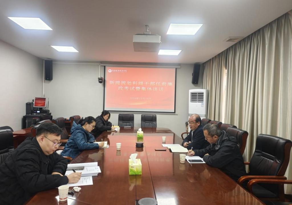 为强化对学校新任领导干部的教育与监督,进一步提升廉洁自律意识与拒腐防变能力。依据领导干部任前廉政谈话的相关规定,12月10日,校纪委对拟新提拔处科级领导干部开展任前廉政法规考试和集体廉政谈话,学校党委副书记、纪委书记郑毅刚出席谈话会议,会议由纪委副书记、纪律检查室主任王小迁主持。