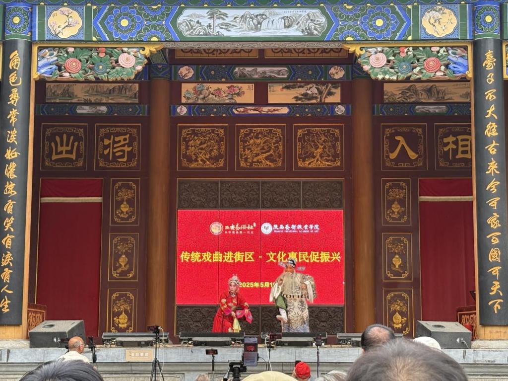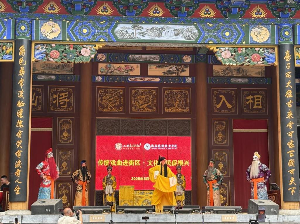5月16日下午,陕西艺术职业学院戏曲学院在易俗社文化街区开展"传统戏曲进街区·文化惠民促振兴"职业教育周实践活动。此次活动通过秦腔经典剧目展演、戏曲身段教学展示、传统唱腔研习等多元化形式,集中呈现戏曲表演专业"以演促教、演教相长"的教学特色。学生登台展演既是对课堂教学成果的实践检验,更是通过"沉浸式"舞台历练提升学生职业素养的重要途径,生动诠释了"课堂+舞台+社会服务"三位一体的专业人才培养模式,在推动秦腔艺术传承发展的同时,有效实现了职业教育与文化惠民的双向赋能。