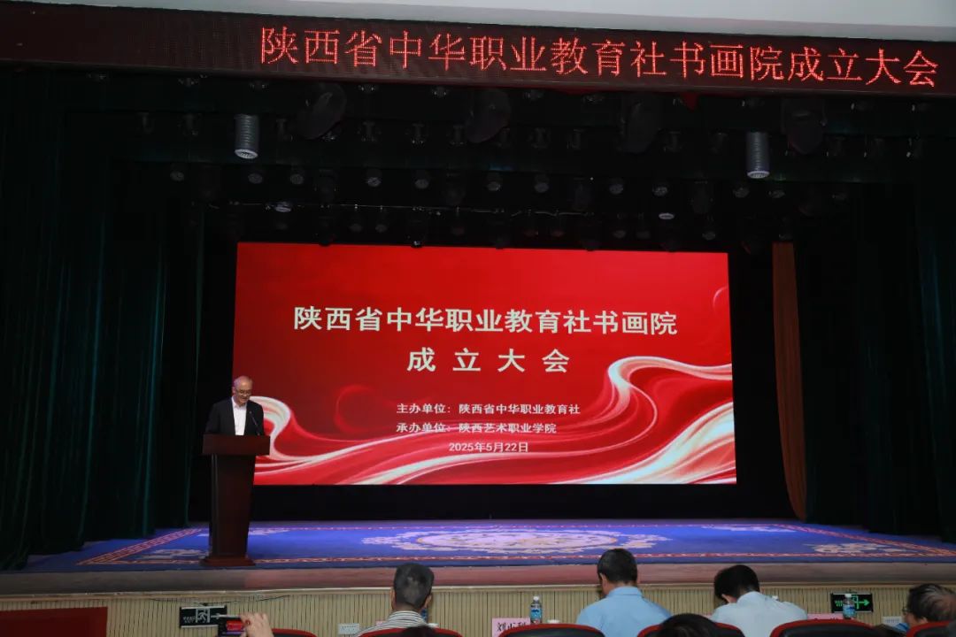 翰墨飘香绘盛世,丹青溢彩谱华章。为深入贯彻中央八项规定精神,推动中华优秀传统文化与职业教育融合发展,5月22日上午,陕西省中华职业教育社书画院成立大会在陕西艺术职业学院文艺南路校区小剧场隆重举行。省政协文化文史学习委员会副主任、各界书画院党支部书记钟顺虎出席会议,省中华职业教育社副主任、秘书长王彦平讲话,李明富代表书画院首任班子作表态讲话,陕西艺术职业学院党委书记刘正利致欢迎词,省书协副主席杨晓萍教授、省美协副主席解安宁教授、省社书画院艺术顾问、知名书法家岳崇分别在成立大会上致辞。省书协、省美协及省内有关职业院校、相关艺术团体负责人,有关企业界人士及省社书画院会员代表共80余人参加会议,以书画为媒、以职教为桥,共同开启传统文化传承与职业教育融合发展的新篇章。大会由陕西艺术职业学院党委副书记佘占宏主持。