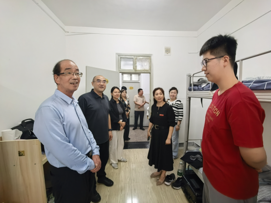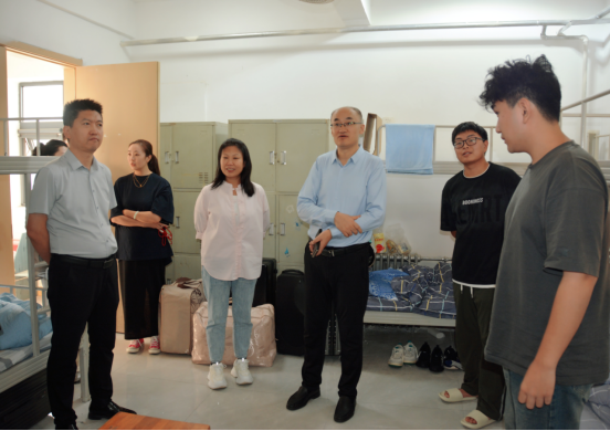 秋阳送暖,杏坛迎新。9月12日,校领导班子成员与各二级学院负责人、各部门负责人走进学生公寓,深入2025级新生宿舍,开展亲切走访与慰问活动,为新同学送去来自学校的第一份问候与关怀,以实际行动践行“以学生为中心”的育人理念。