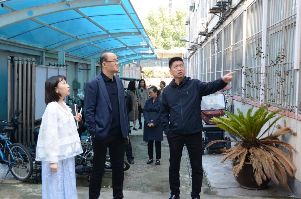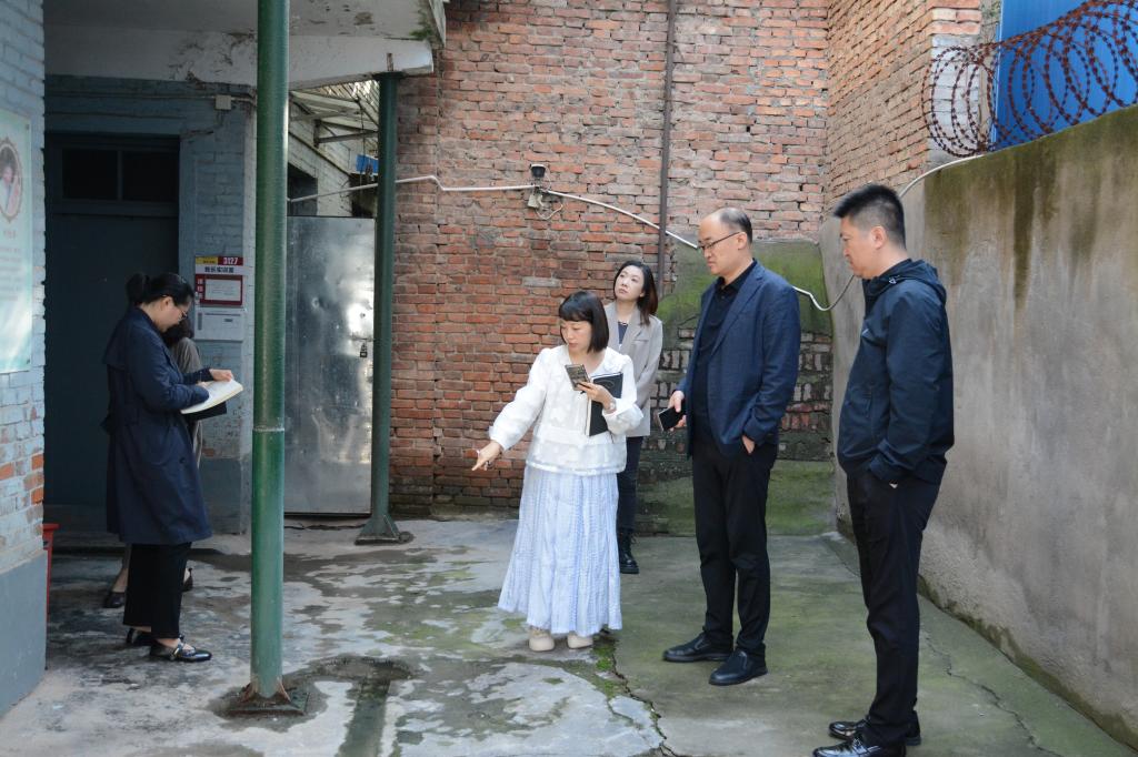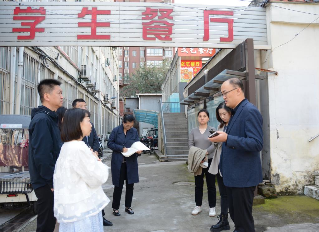 检查组一行深入校园各处巡查
