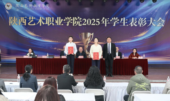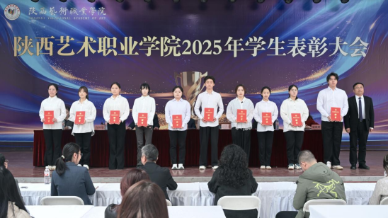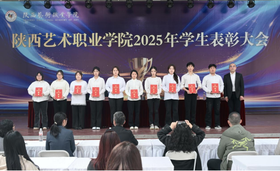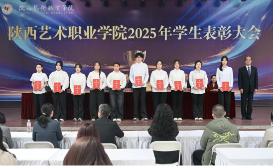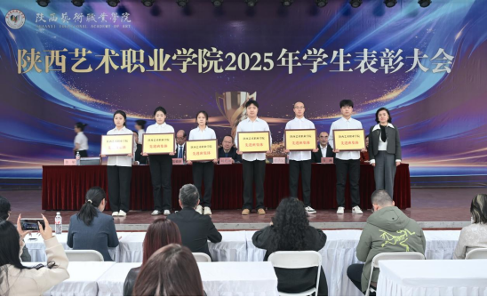 最后,党委书记刘正利饱含深情发表讲话,向受表彰的先进集体和个人致以热烈的祝贺。他指出,2025 年,学校坚持以习近平新时代中国特色社会主义思想为指导,紧扣立德树人根本任务,广大学生在世界职业院校技能大赛、中国国际大学生创新大赛、全国大学生职业规划大赛等国内外高水平赛事中屡创佳绩,充分展现了陕艺学子扎实的专业素养与昂扬的精神风貌,为学校高质量发展注入了强劲动力。讲话中,刘正利向全体学生提出三点殷切期望:一是要坚定理想信念,心怀家国、志存高远,以艺术作品传递真善美,彰显新时代艺术青年的使命担当;二是要秉持匠心精神,深耕专业、勤学苦练,不断锤炼过硬技艺,争做本领扎实的艺术 “守艺人”;三是要坚守文化根脉,守正创新、薪火相传,遵循 “传承不守旧,创新不离宗” 的要求,自觉传承弘扬中华优秀传统文化,希望全体同学向下扎根、向上生长,以青春之我、奋斗之我,为强国建设、民族复兴贡献艺术力量。