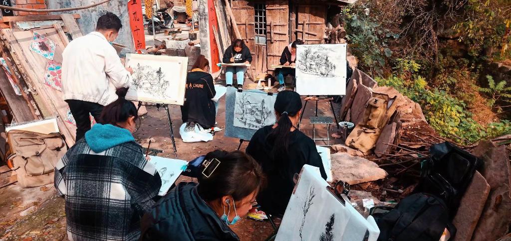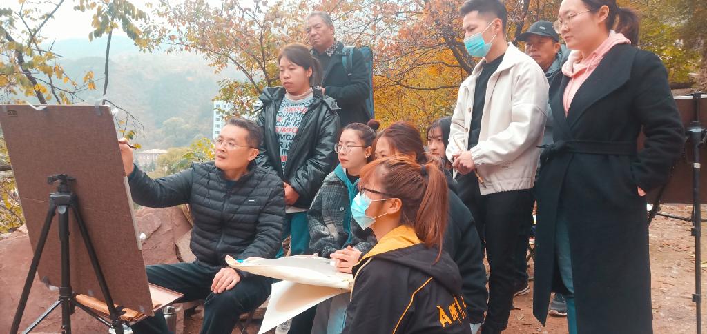 峰峦叠嶂、溪水欢跃、云海翻腾、层林尽染……近日,陕西艺术职院美术系150余名师生走进太行山,在山西长治平顺县井底村开展为期三周的写生实践活动,在深入生活、自然中,共创作300余幅作品。师生们用动情的笔触,描绘当地自然山川、领略人文风情,再现祖国美好画卷,用实际行动引导学生“深入生活、扎根人民”,练就过硬本领,为时代明德画像。