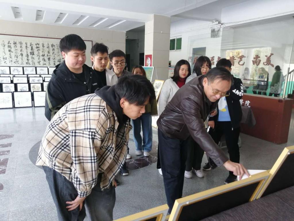 院党委副书记、副院长肖幸海在写生作品展中点评学生作品