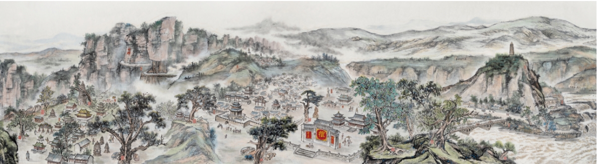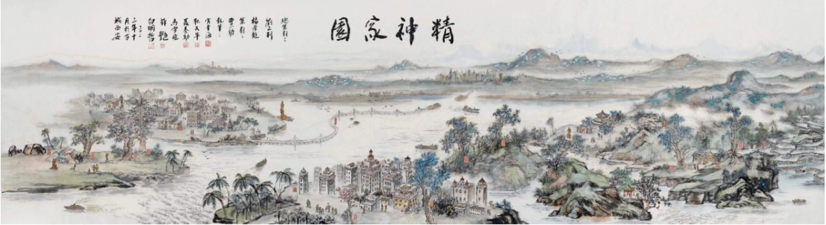 为了弘扬祖国文化,践行习近平文化思想,增强文化自信,陕西艺术职业学院创作了36米国画长卷《精神家园》。本精品创作工程由肖幸海教授负总责。作品以承载祖国文化基因的100组景点为主体,以100棵最具文化内涵的古树相伴随,以黄河、长江为纽带,以泰山、井冈山、秦岭、宝塔山、长城为背景,浓缩文化基因,释放文化内核,为中华民族伟大复兴提供精神力量。