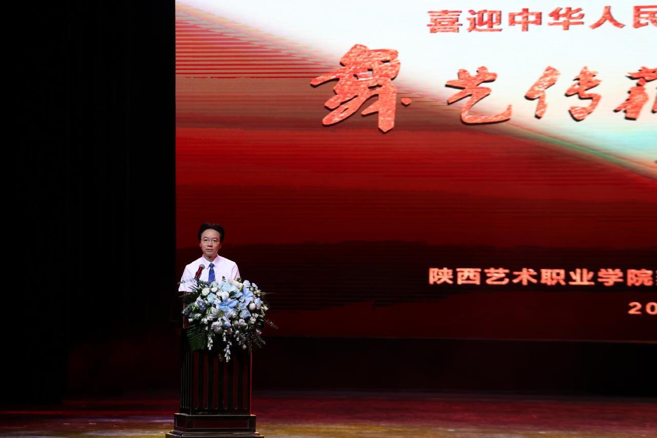 活动伊始,陕西艺术职业学院党委副书记、校长杨孝龙致欢迎词,他代表学校对出席活动的领导和嘉宾表示热烈欢迎。他指出,陕西艺术职业学院以培养陕西地方戏曲(秦腔)人才和陕西地方非物质文化遗产传承人才为己任,把艺术专业教育与审美教育、人文教育和职业教育相融合,通过强化“艺术实践”和“创新能力”,回归“以美育人、以美化人、以美培元”的价值本位,继续承担好中国优秀传统文化和陕西地方文化的传承创新使命,用心用情创造出更好更多的精品力作,努力在文化强国和陕西文化强省建设中走在前、做表率,为实现中华民族伟大复兴贡献陕艺力量。