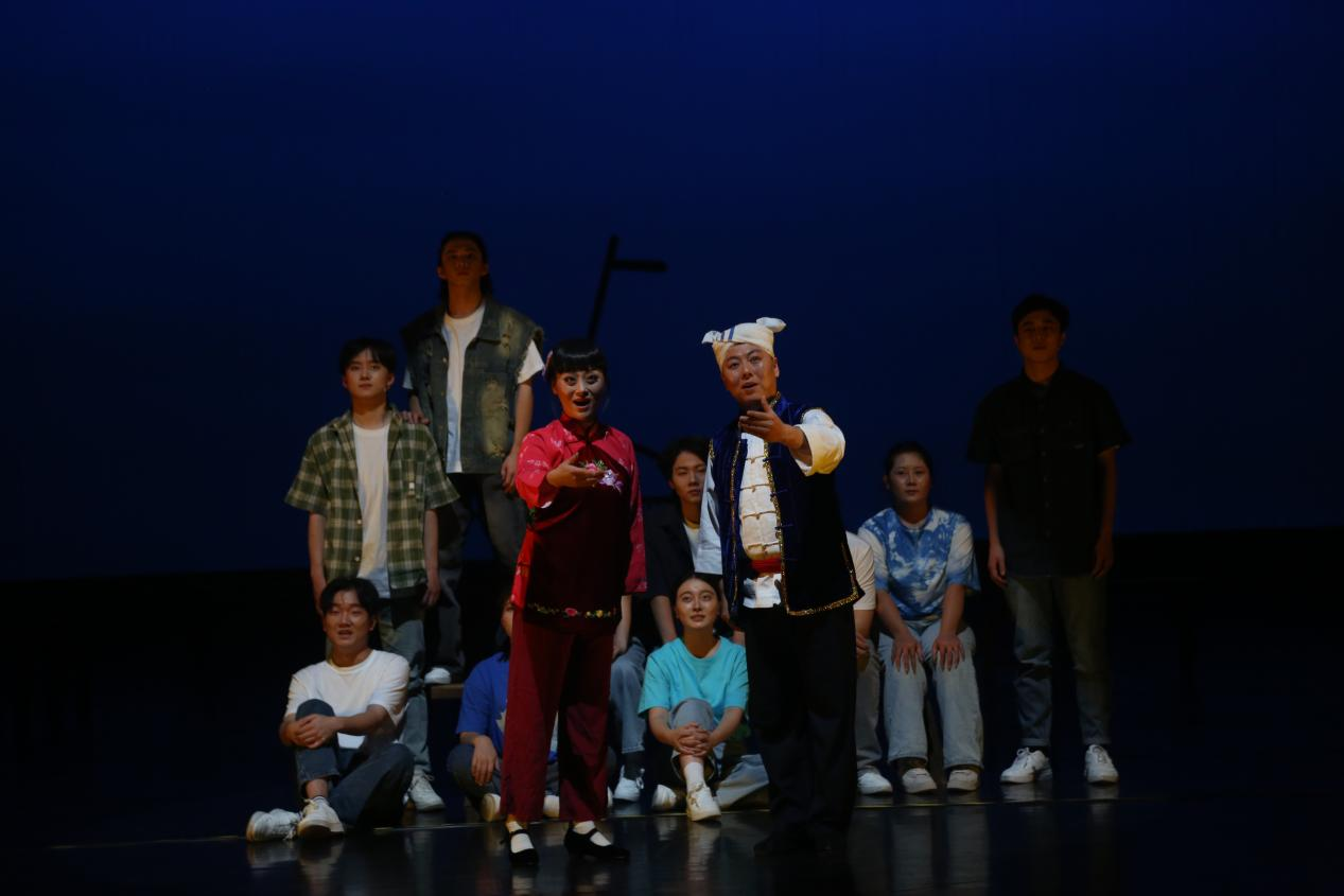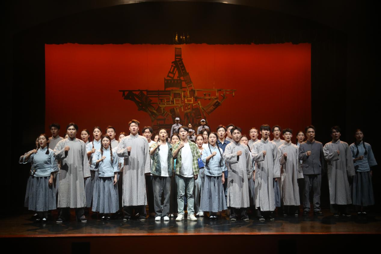 整场演出,演员们用精湛的演技展现出革命先辈们的坚定信念和无畏精神,每一个动作、每一个眼神都饱含深情。陕北民歌响起时,那悠扬的旋律仿佛穿越时空,让人感受到了黄土文化的豪迈与深情。陕北说书则以其独特的节奏和韵味,生动地讲述着革命故事。舞蹈演员们用优美的舞姿诠释着历史的厚重与激情,秧歌剧的欢快节奏为整个演出增添了一抹亮色,秦腔的高亢激昂更是让观众们热血沸腾。合唱部分则以磅礴的气势将演出推向高潮,歌声回荡在剧场,震撼着每一个人的心灵,为全体观众上了一堂生动的爱国主义“思政大课”。