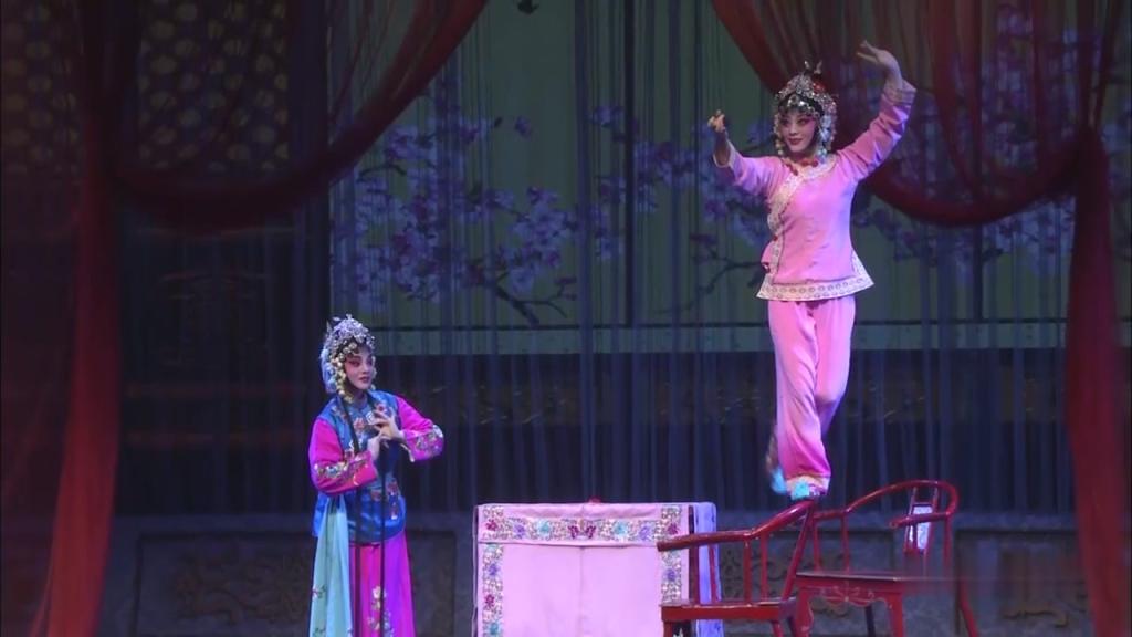 秦腔《梵王宫》讲述猎户花云与贵族耶律寿之妹耶律含嫣在梵王宫相遇,彼此爱慕。耶律含嫣回家后思念花云忧思成疾,花妈妈以卖花为名,让花云男扮女装,代替耶律含嫣的嫂嫂,潜入含嫣闺房与她相会,以花云与含嫣结为夫妻而煞戏。其中,《挂画》一折最为经典,该折子戏为“做功戏”,通过高难度的跷功、椅子功、手帕功、水袖功等绝技绝活,表现耶律含嫣布置闺房等待花云到来时的激动心情。