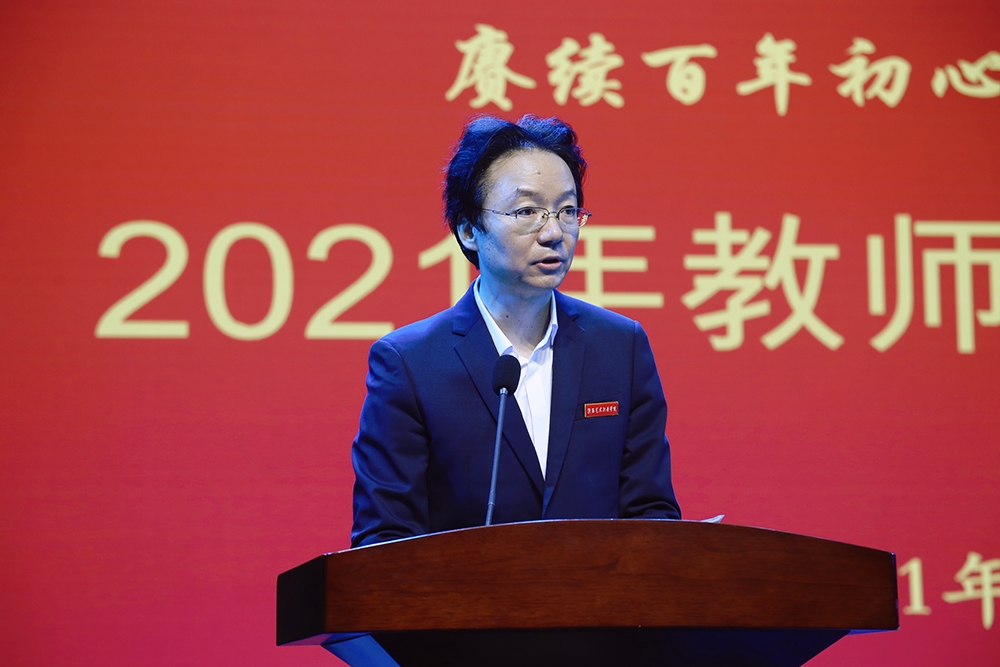 “光荣在教30年”教师代表、戏曲学院院长李旭阳在发言中回顾了从教30年来不忘教育初心、牢记教育使命所经历的艰难岁月和奋斗历程,表示今后将在教学相长中继续探寻艺术真谛,在服务人民中始终砥砺从艺初心,为奋力实现学院高质量发展贡献全部力量。