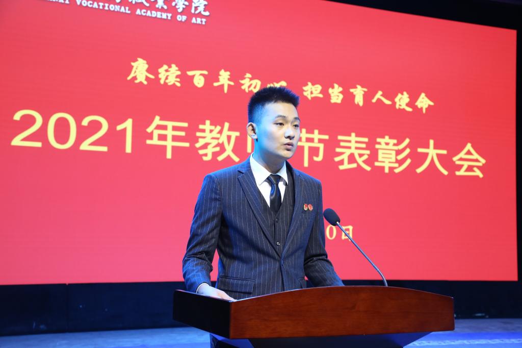 学生代表、美术与设计学院2019级环境艺术设计专业张也代表全体学生向辛勤付出、无私奉献的老师们致以节日的祝福和诚挚的谢意。