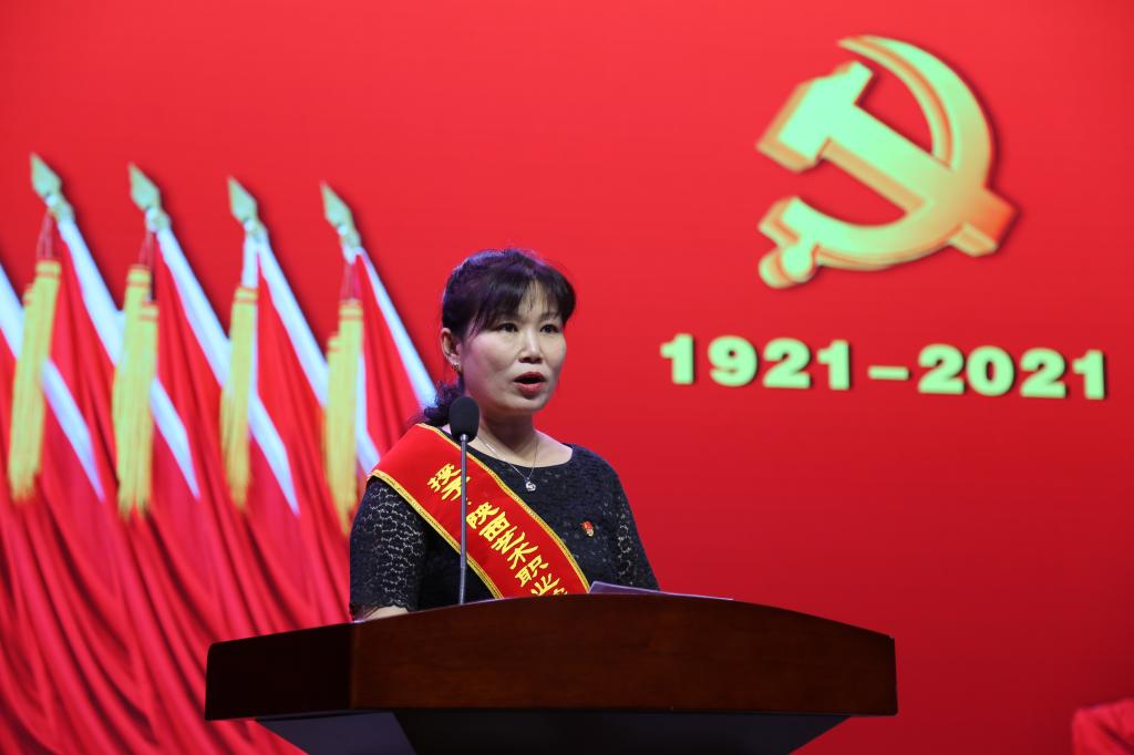 音乐系直属党支部书记郝叶妮代表受表彰人员发言,表明同心向党,在教书育人中拼搏奉献的决心。