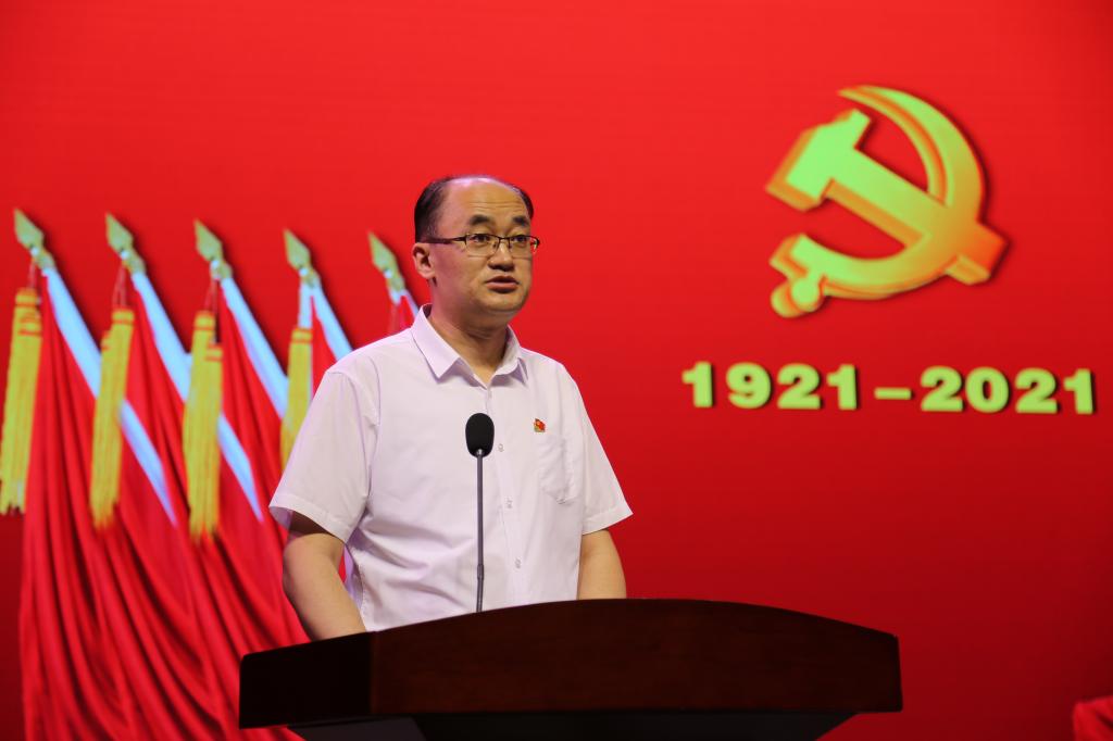 党委副书记佘占宏宣读了《中共陕西艺术职业学院委员会关于表彰2021年先进基层党组织、优秀共产党员和优秀党务工作者的决定》,对学院4个先进基层党组织、8名优秀党务工作者、42名优秀共产党员进行了表彰。