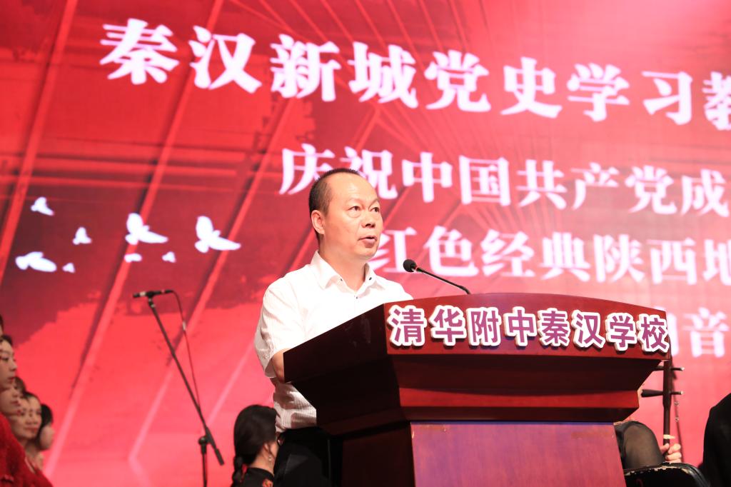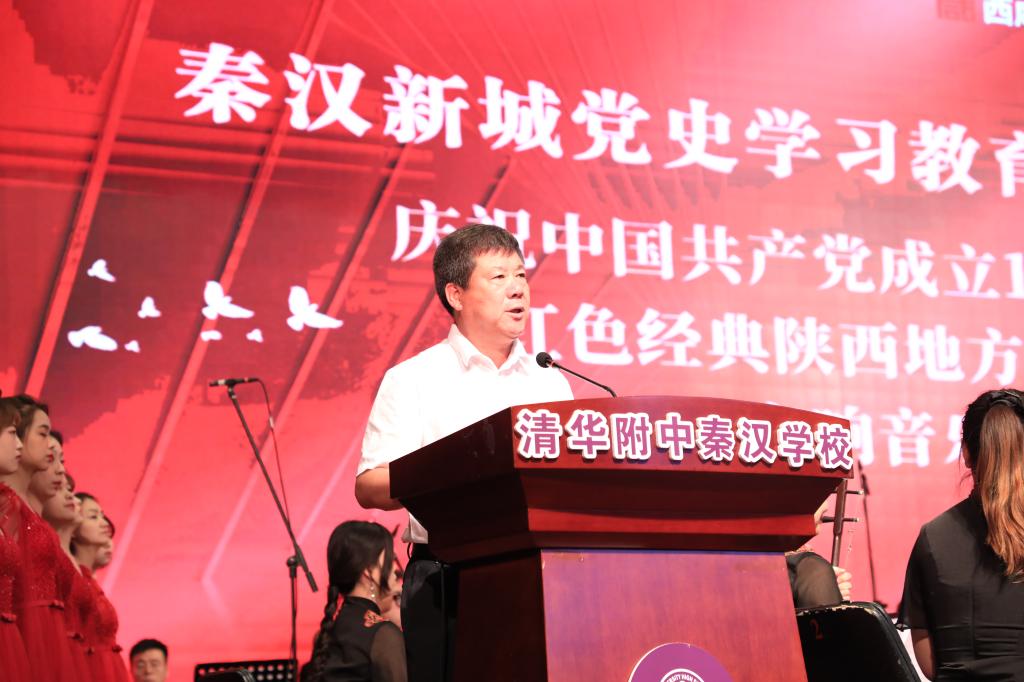 演出前,吴起在致辞中感谢学院师生的演出,表示在党的百年华诞即将来临之际,双方携手以一场独具陕西地方特色的音乐会回望党的百年征程,表达对党的热爱,具有重要意义,将从百年党史中汲取智慧力量,全力讲好秦汉新城高质量发展的故事,谱写追赶超越新篇章。