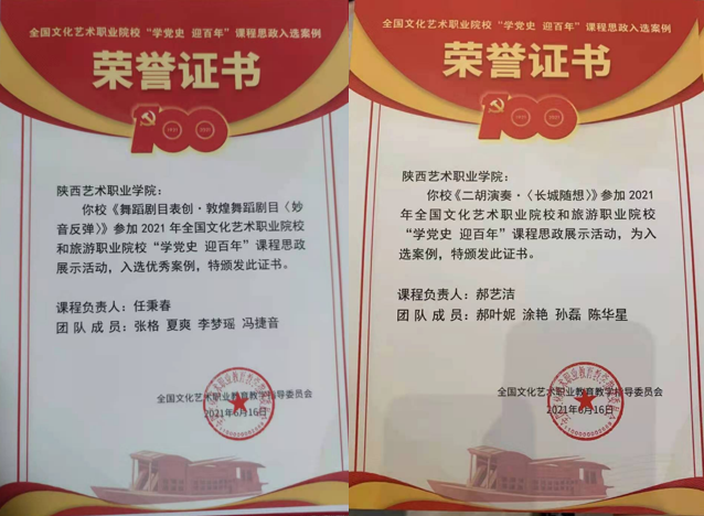 陕西艺术职院2件案例入选2021年全国文化艺术职业院校和旅游职业院校“学党史 迎百年”课程思政展示活动