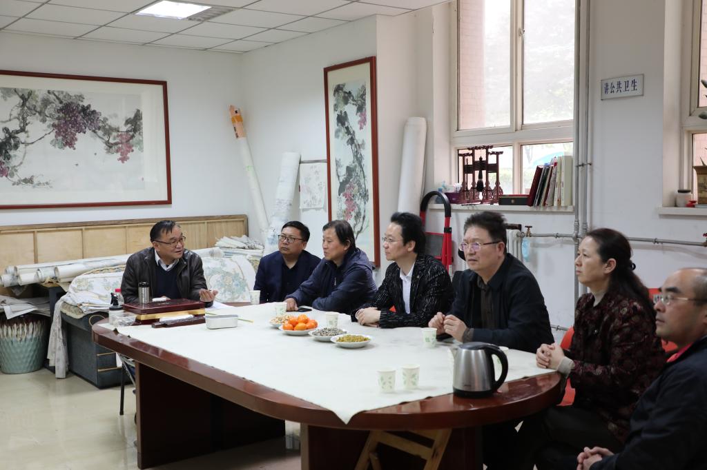 4月19日下午,院长杨孝龙、副院长任玉银、党委委员、干部人事处处长刘艳萍以及党政办、宣传统战部、教务处、美术系负责人等一行赴我院献礼建党百年国画长卷《根深叶茂》创作工作室对项目创作情况调研指导。